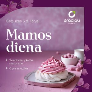 Kviečiame Jus jaukiai praleisti Mamos dienos sekmadienį, kuriame mūsų virtuvės šefų komanda pasitiks su šventiniu meniu. Gyva, fone skambanti muzika kurs pakilią nuotaiką, o Anykščių gamtos aplinka pasitiks ramia atmosfera.